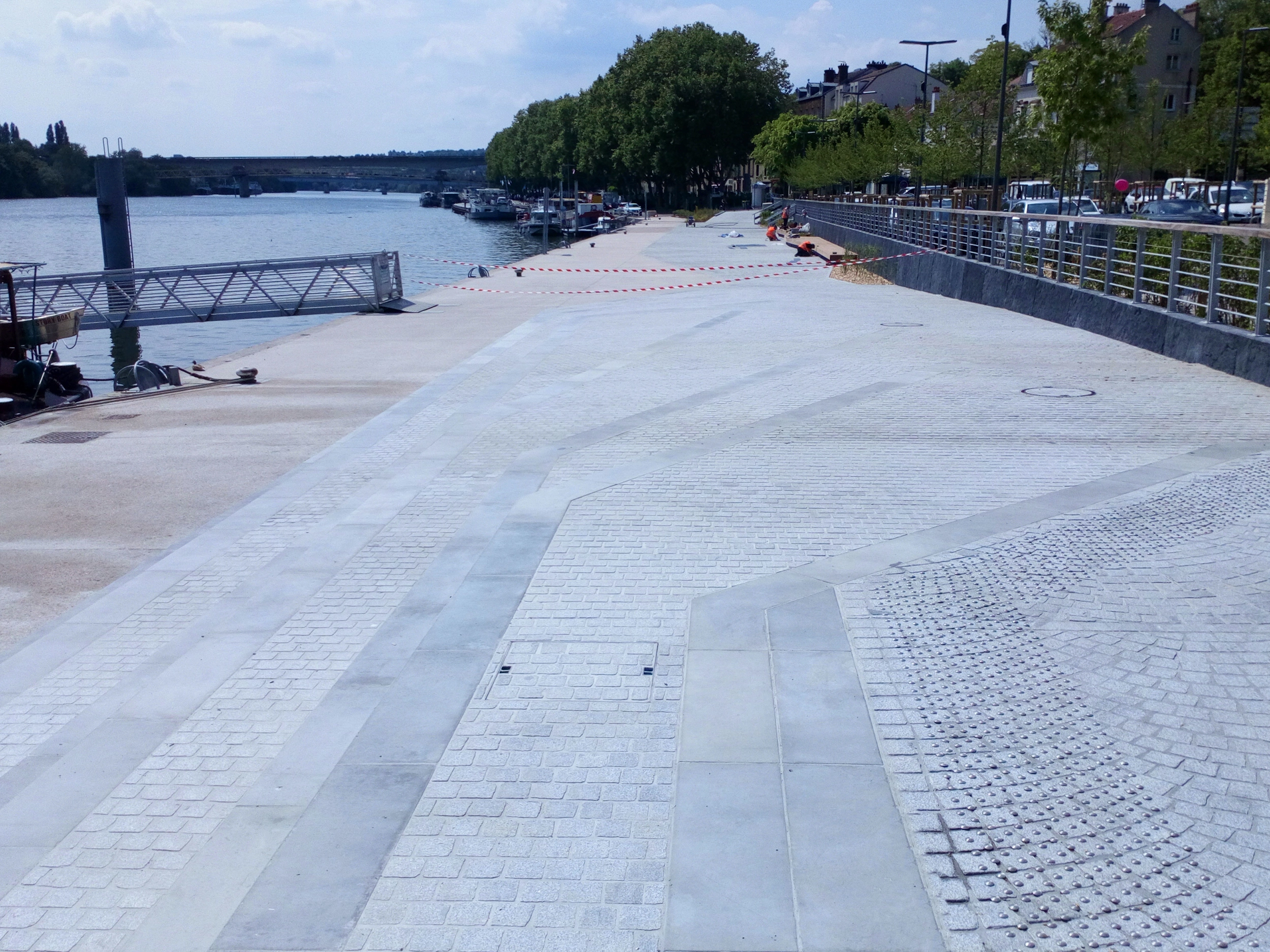 Historiquement, nous intervenions essentiellement dans les départements des Yvelines et les Hauts-de-Seine. Aujourd’hui, nous couvrons toute l’Ile de France et nous intervenons dans d’autres départements plus éloignés parmi lesquels nous pouvons citer l’Eure, l’Eure-et-Loir, la Sarthe, l’Oise ou encore le Maine-et-Loire, et parfois même dans le sud-est de la France dans les départements du Var, des Bouches du Rhône et des Alpes Maritimes. Spécialistes des aménagements en sites urbains très souvent contraints, nous posons tout type de revêtements modulaires en pierre naturelle ou en béton, et nous réalisons des bétons décoratifs. Forts d’une expérience de plus de 20 ans, nos équipes dont le savoir-faire et l’expertise technique sont reconnus, contribuent avec passion à l’embellissement de l’espace public. Nous vous invitons à venir feuilleter, ici, l’album photos de quelques-unes de nos réalisations emblématiques depuis 2003 …